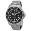 Silver-tone stainless steel case with a silver-tone stainless steel oyster bracelet. Black ceramic bezel. Black dial with silver-tone hands and index hour markers. Minute markers around the outer rim. Dial Type: Analog. Luminescent hands and markers. Date display at the 3 o’clock position. Automatic movement. Scratch resistant sapphire crystal. Screw down crown. Solid case back. Round case shape, case size: 44 mm. Fold over clasp with a safety release. Water resistant at 3900 meters / 12800 feet. Functions: date, hour, minute, second. Additional Info: original box, international warranty card, manual (complete accessories). Deep Sea Series. Dive watch style. Watch label: Swiss Made. Rolex Deep Sea Automatic Black Dial Men’s Watch 136660BKSO.