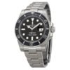Stainless steel case with a stainless steel Rolex oyster bracelet. Uni-directional rotating stainless steel bezel with a black cerachrom ring. Black dial with luminous silver-tone Mercedes-logo, sword, and Breguet-style shape hands and dot hour markers. Minute markers around the outer rim. Dial Type: Analog. Luminescent hands and hour markers. Date display at the 3 o’clock position. Rolex calibre 3135 automatic movement, containing 31 Jewels, bitting at 28800 vph, and has a power reserve of approximately 48 hours. Scratch resistant sapphire crystal. Screw down crown. Solid case back. Round case shape. Case size: 40 mm. Case thickness: 13 mm. Band width: 20 mm. Deployment clasp. Water resistant at 300 meters / 1000 feet. Functions: date, hour, minute, second, chronometer. Submariner Series. Dive watch style. Watch label: Swiss Made. Rolex Oyster Perpetual Submariner Black Dial Black Cerachrom Bezel Steel Men’s Watch 116610LN.